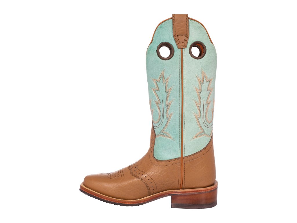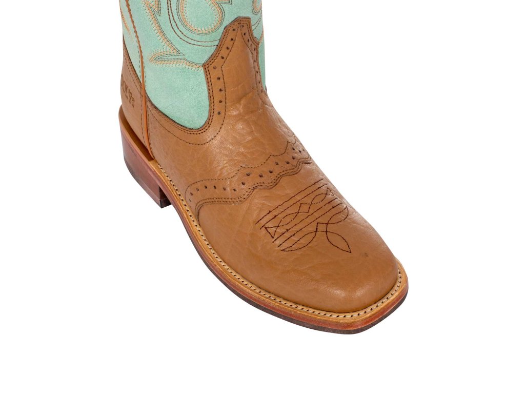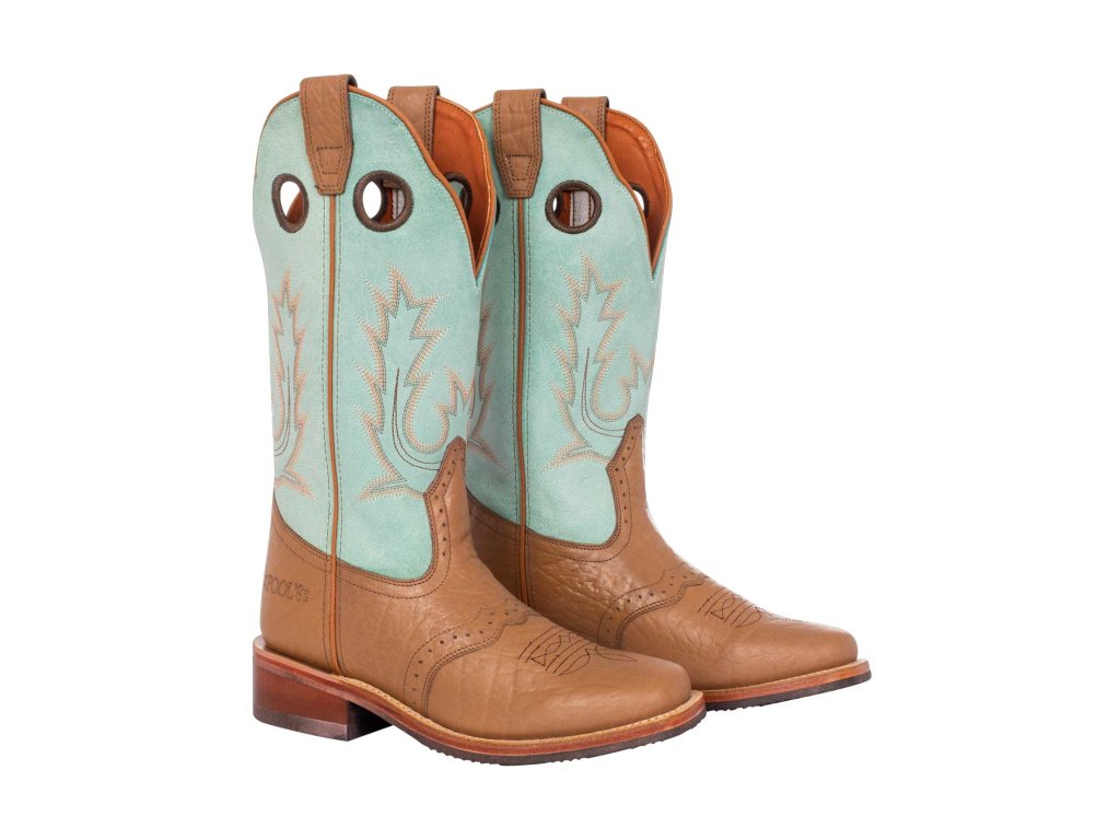 Dámska westernová obuv vyrobená z plnozrnnej teľacej kože s ručným spracovaním, ktoré zaručuje rýchle obutie a plnú voľnosť pohybu.