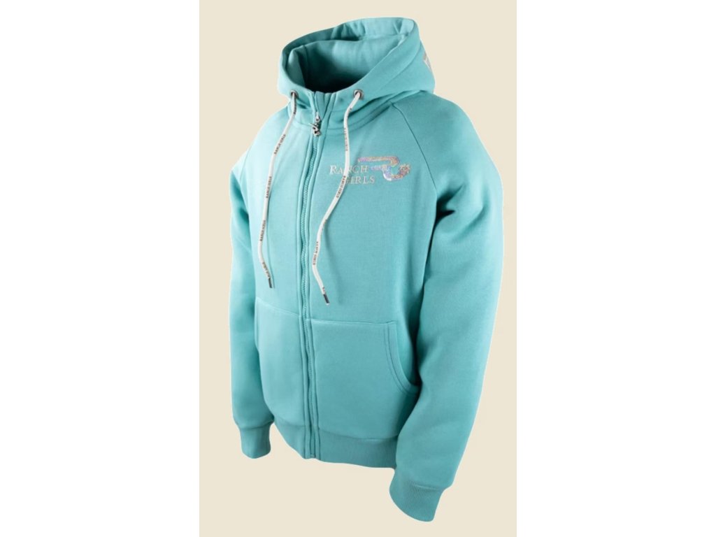 Náš „ALL TIME FAVORITE“, Ranch Girls Hooded Sweat Jacket SHINY mint, prichádza v novom dizajne. Táto mikina je určená pre všetky, ktoré chcú životom „jazdiť“ pohodlne, štýlovo a s maximálnou voľnosťou pohybu. Je vyrobená z mäkkého trojnitkového sweat materiálu s jemne počesanou vnútornou stranou, ktorý zabezpečuje príjemný komfort pri nosení – v sedle, na ranči aj vo voľnom čase.