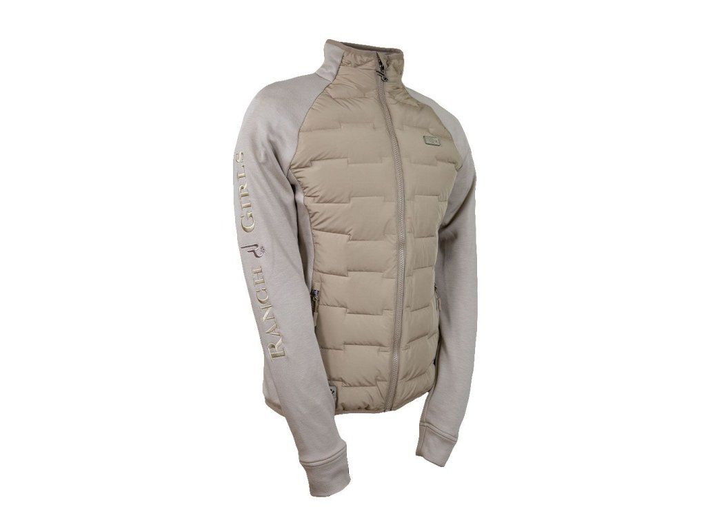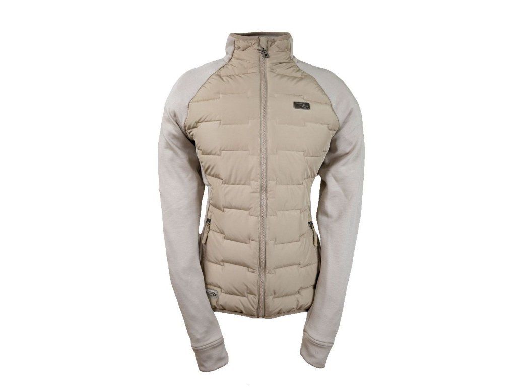 Len málo funkčných kúskov je takých mäkkých a príjemných na nosenie ako bunda Ranch Girls Hybrid ProShield „ALISA“ v prevedení oatmeal. Materiál na rukávoch a na bočných častiach tela je z vnútornej strany počesaný a vďaka svojej elasticite sa ideálne prispôsobí postave. Funkčná bunda má na prednej strane a na chrbte použitý podšitý nylon, ktorý je ľahký a vodoodpudivý. Výplň je z polyesteru – nejde o páperie – čo výrazne uľahčuje pranie a údržbu.