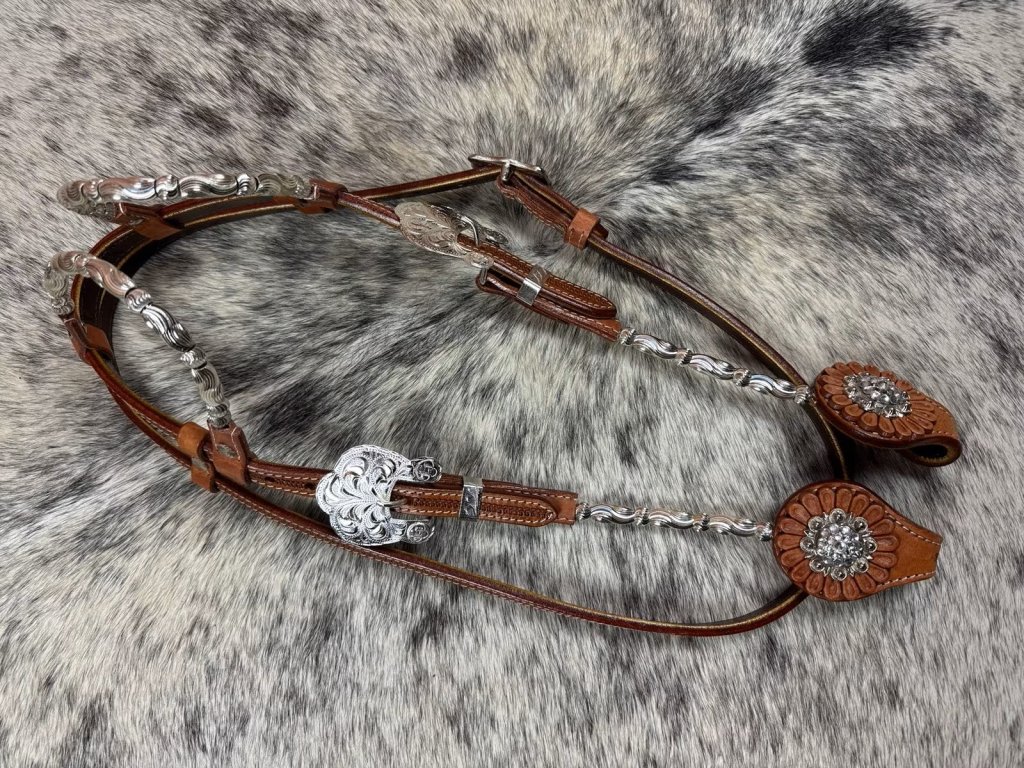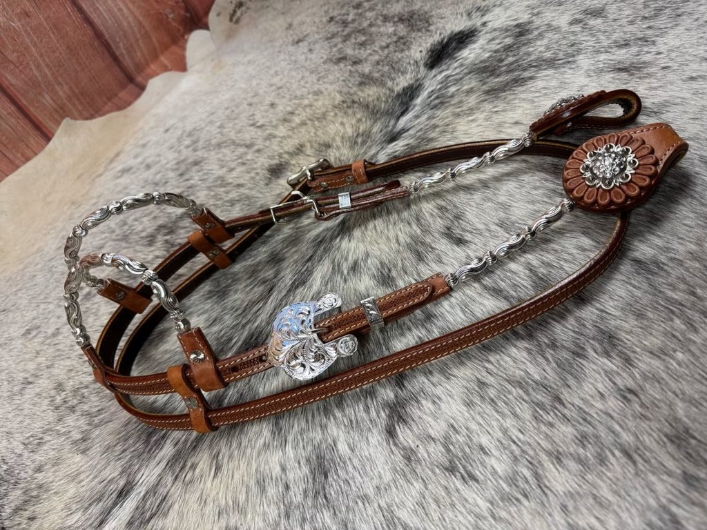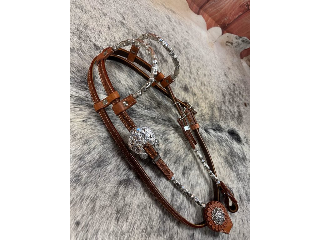 ✨ Elegantný dizajn: kvalitná a odolná koža doplnená o nádherné strieborné kovanie s florálnym gravírovaním ✨ Glamour vzhľad: zdobené conchos s trblietavými kamienkami dodávajú uzdečke výnimočný vzhľad ✨ Perfektné prispôsobenie: vďaka nastaviteľným prackám ju jednoducho prispôsobíš svojmu koňovi ✨ Odolná kvalita: pevné materiály vhodné nielen na súťaže, ale aj na každodenný tréning
