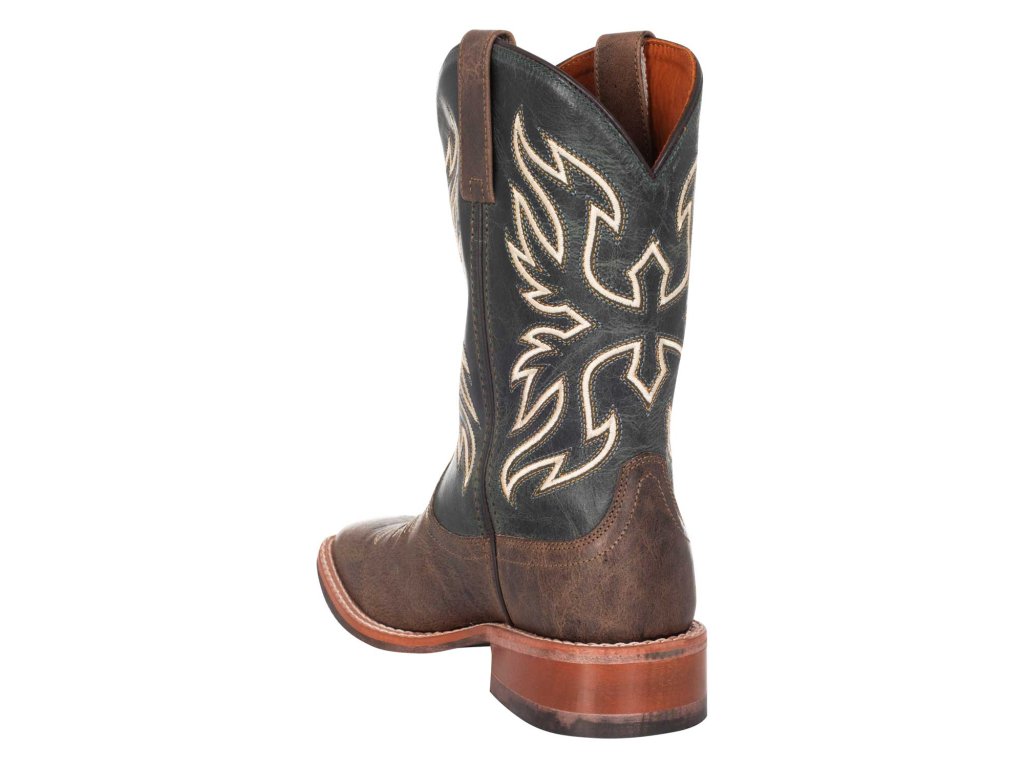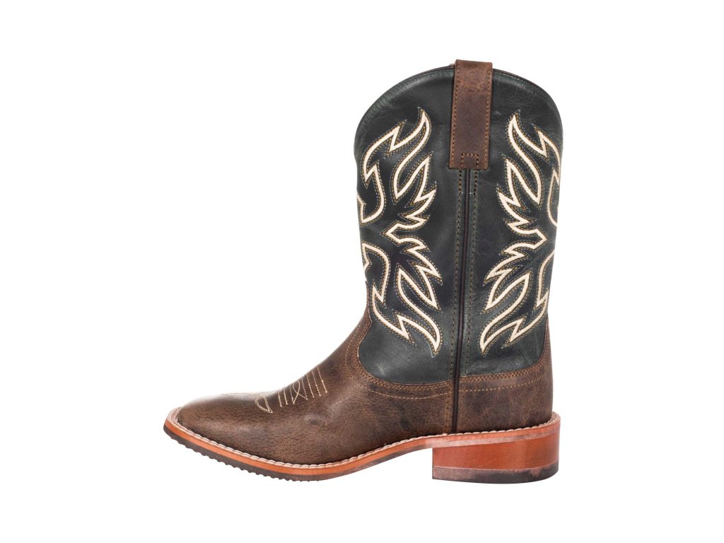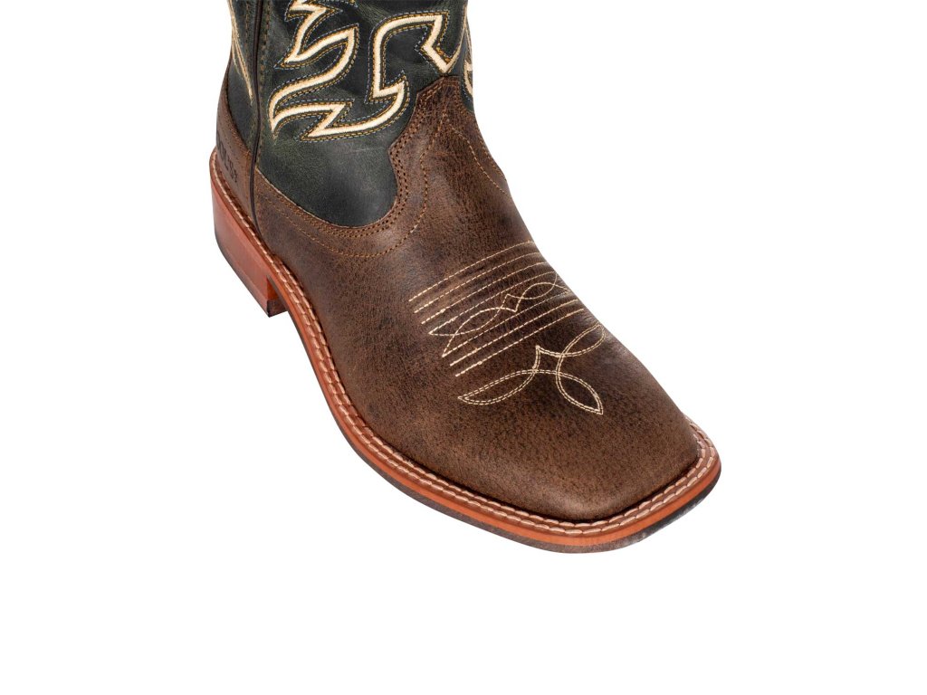 Westernové čižmy Pool's vyrobené z plnozrnnej teľacej kože s dôrazom na remeselné spracovanie, zdobené čierno-bielymi detailmi a hranatou špičkou.
